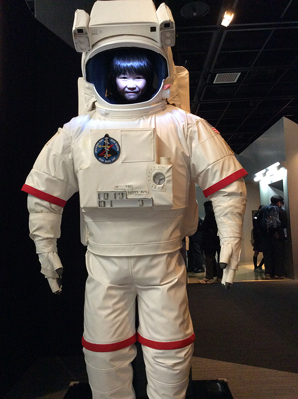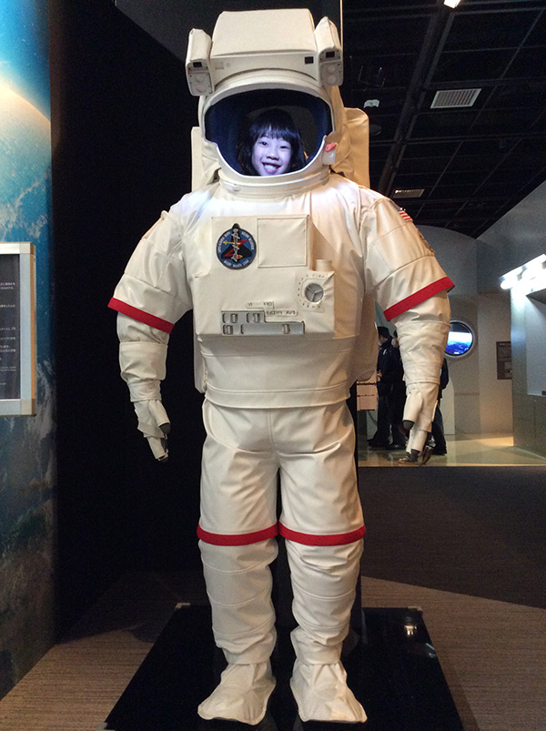 宇宙飛行士になった気分でビッグスマイル!”後でママにみせたいな〜”