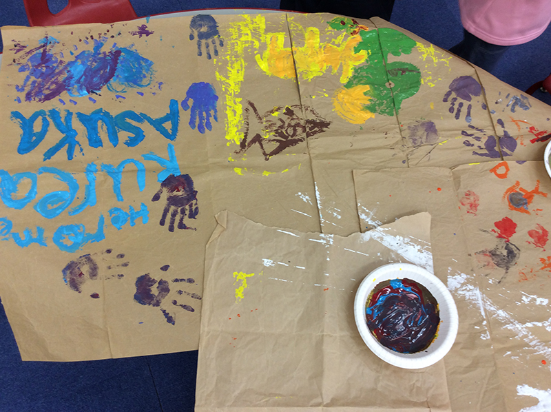 After painting the game sticks, everyone got to do free painting on the brown paper! Everyone’s paper looks so colorful!
