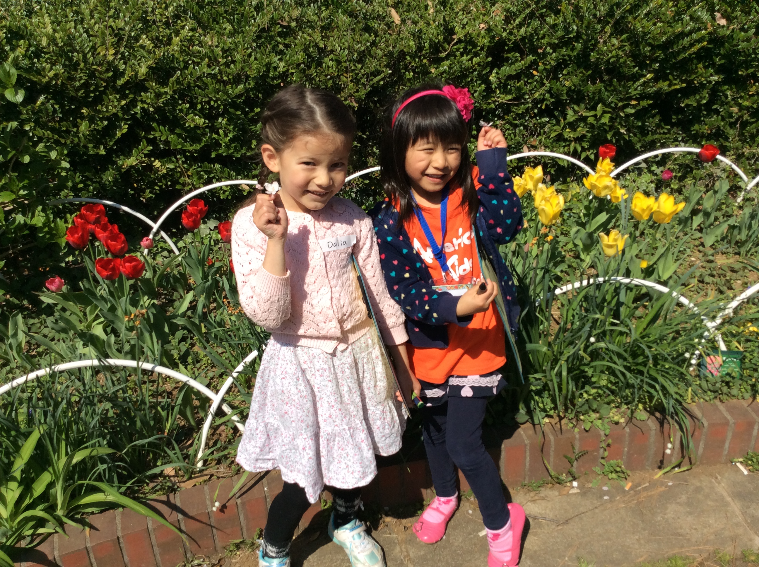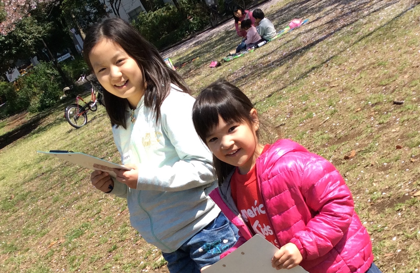 キンダーガーテンクラスの子達は、”I Spy” のリストを持って、パートナーと公園の中を探して回ります。