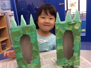 For this craft, they’re working with big tissue boxes and small colorful tissue paper!